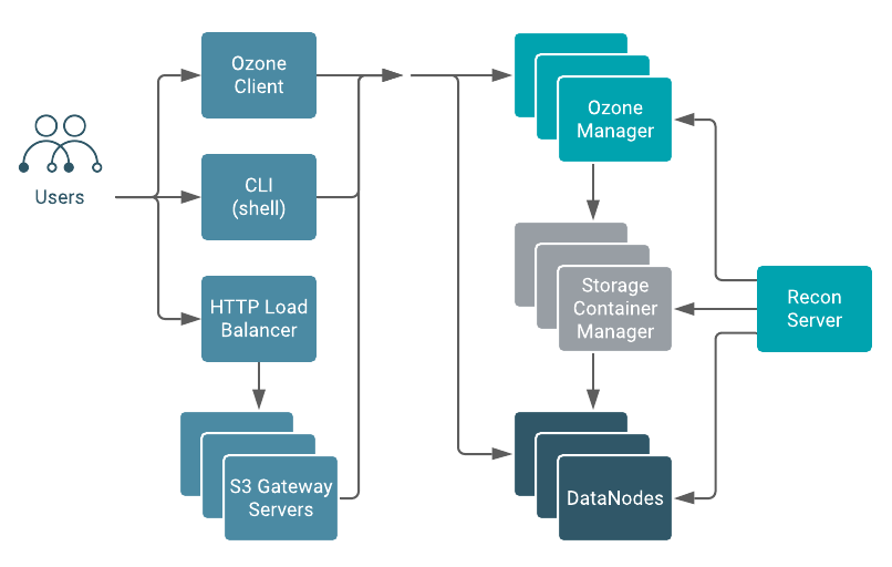 - Ozone DataNodes, not the same as HDFS DataNodes, store the actual user data in