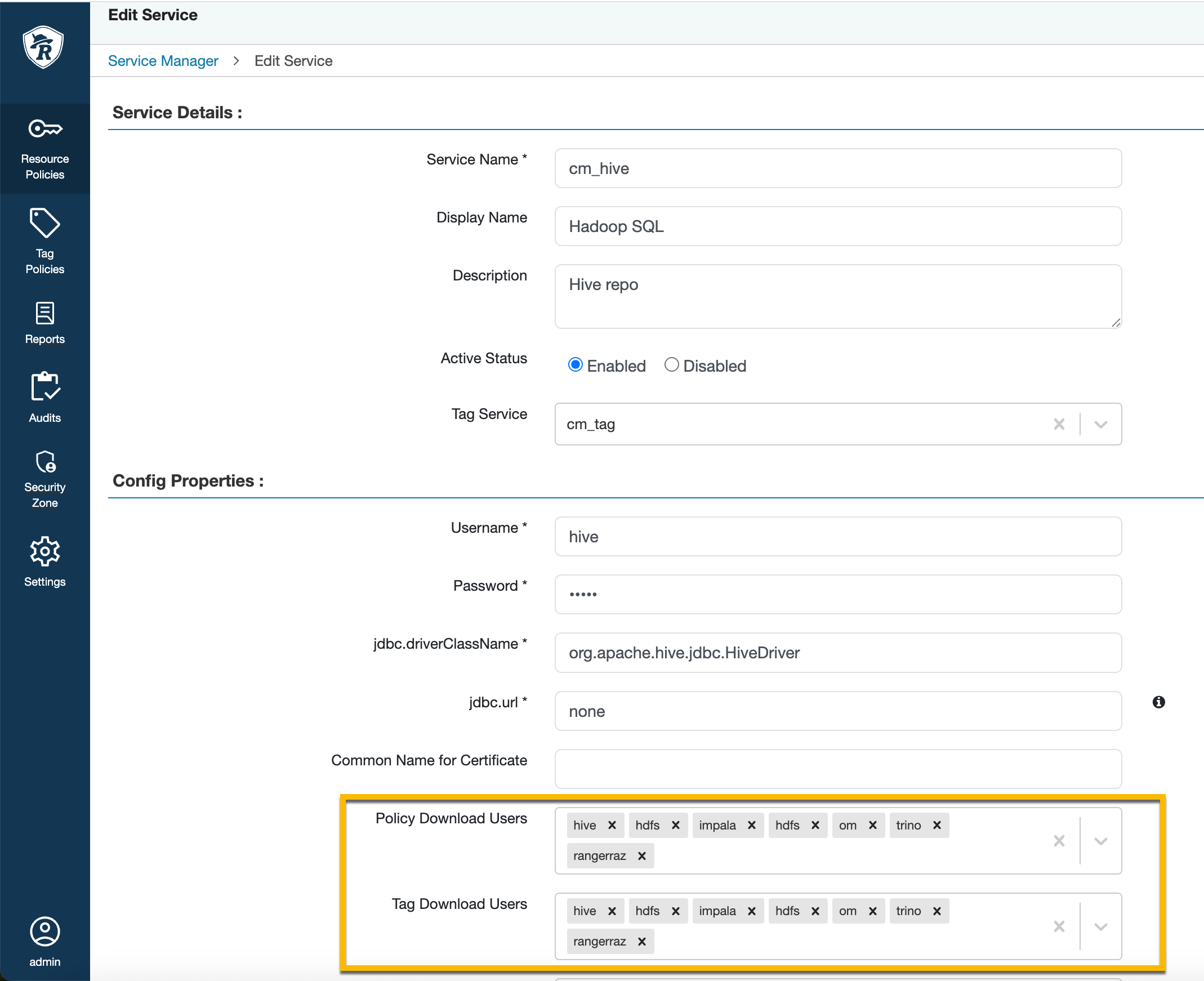 policies defined for Hive tables. RMS is the service that enables Hive-HDFS ACL Sync.