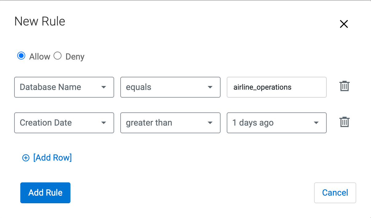 - Use the radio buttons to define your new rule for the Allow or Deny List.