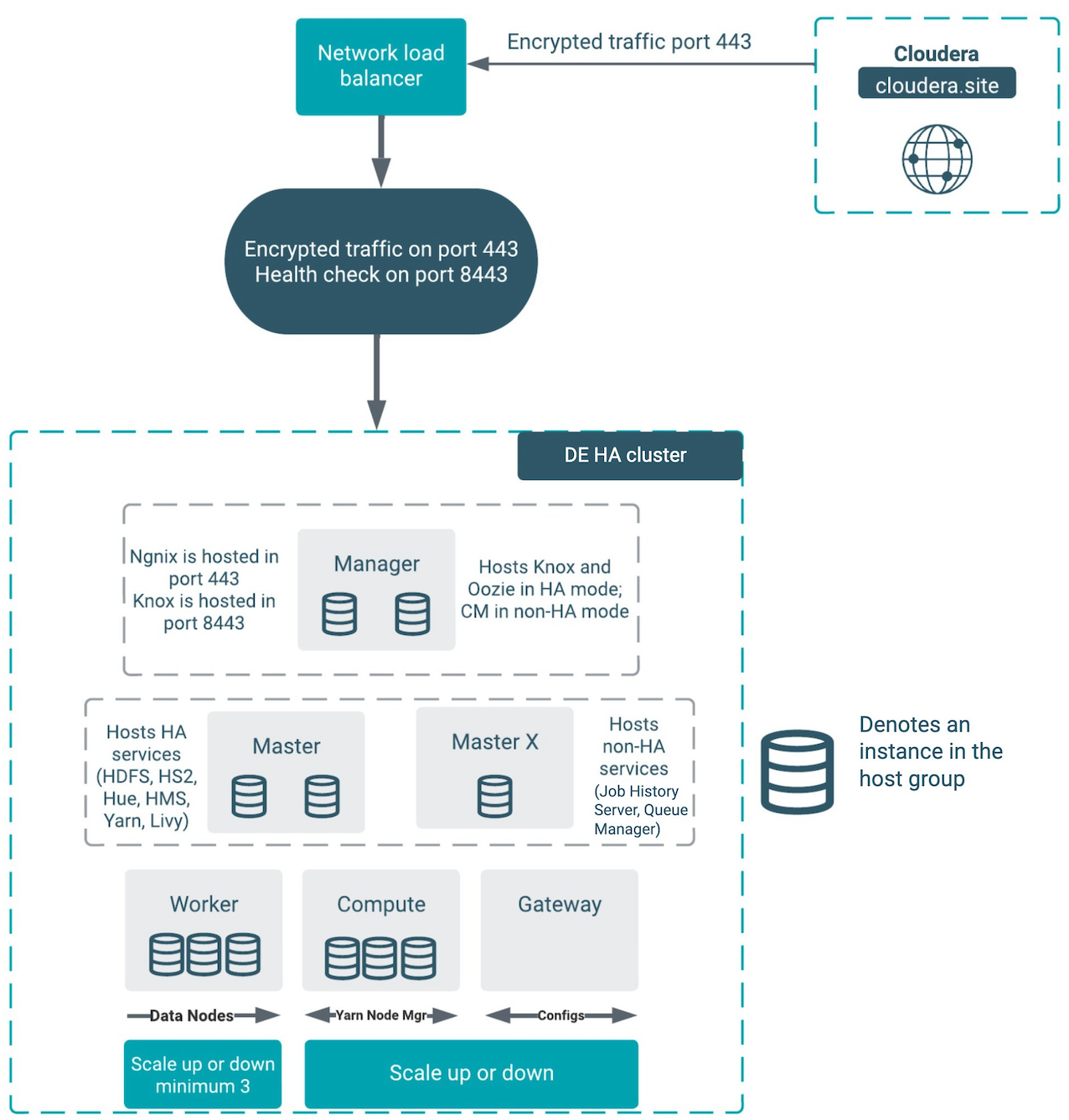 | Oozie | One of the Oozie servers is down in the manager host group. | No impact for AWS and Azure as of Cloudera Runtime version 7.2.11. If you create a custom template for DE HA, follow these two rules: